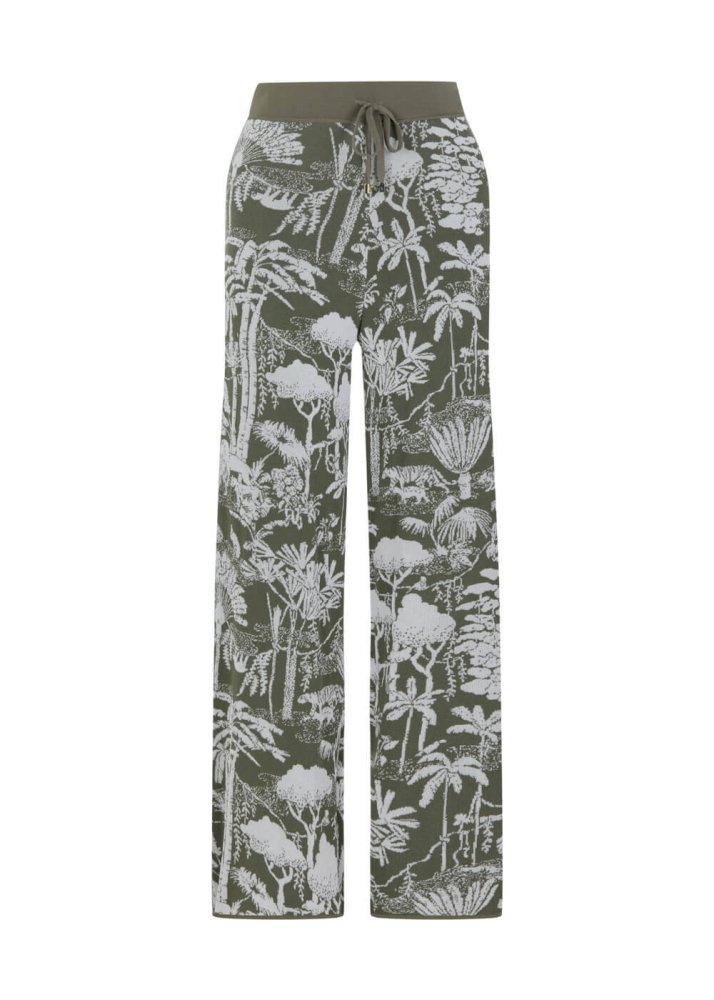 Tropikal Desenli Ekru Haki Triko Pantolon