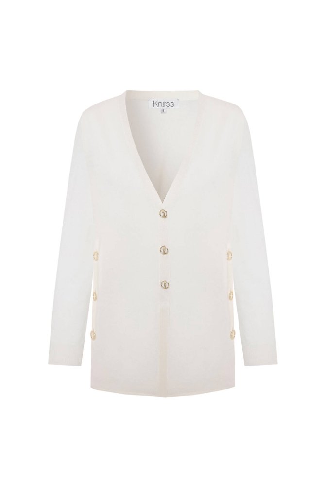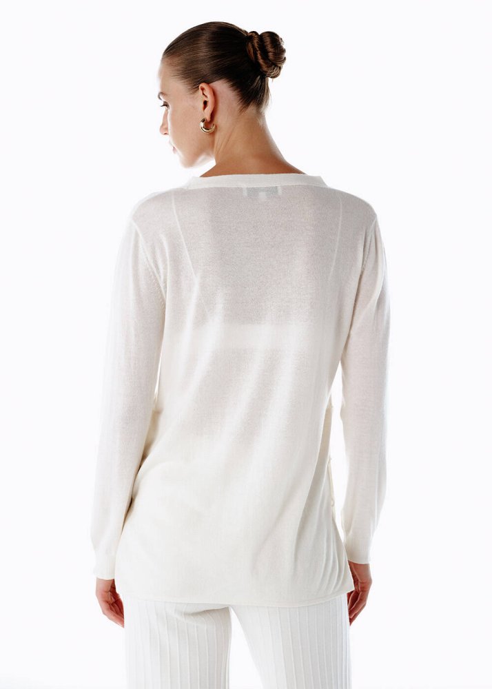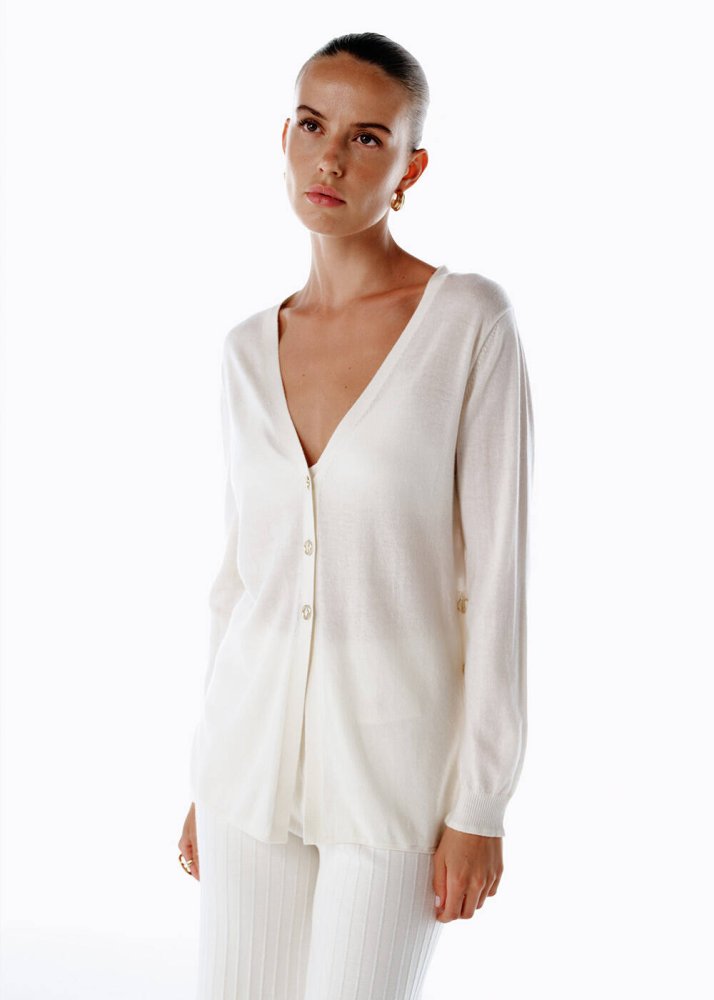 ULTRAFINE ECRU ORGANIC CASHMERE KNIT CARDIGAN