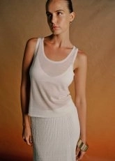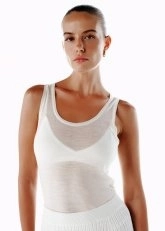 Ultrafine merino yün karışımlı ekru triko üst, yalın tasarımıyla rafine bir şıklık sunuyor. Merino yününün ultra ince dokusu, tasarıma hafiflik ve nefes alabilirlik katarken, ekrunun sakin ve asil tonu feminen bir zarafet yansıtıyor. İncelikli dikiş detayları ve pürüzsüz yüzeyiyle lüks dokunuşlar barındıran bu parça, günün her saatine uyarlanabilir bir tarz vadediyor.