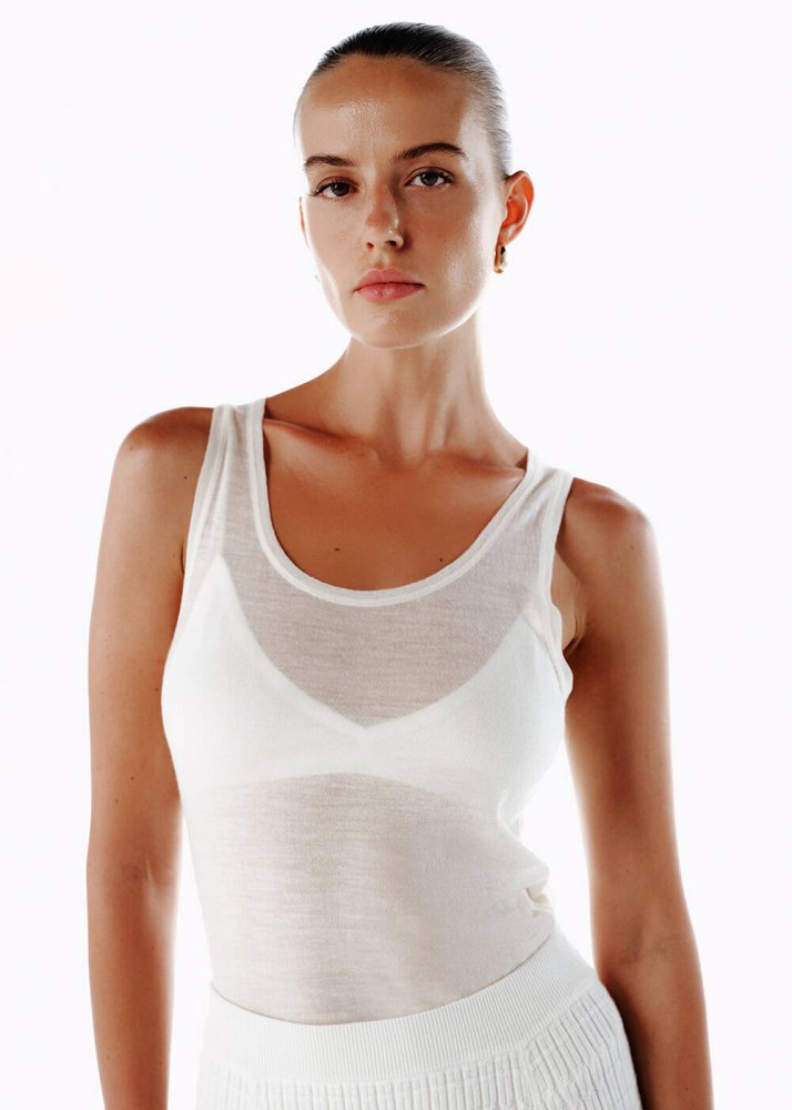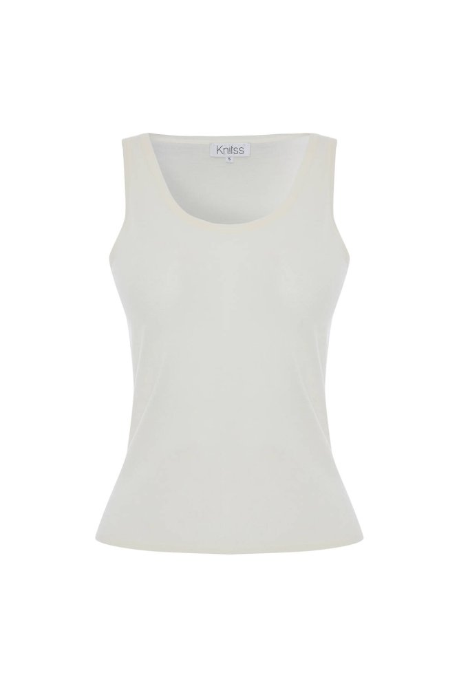 Ultrafıne Merino Yün Karışımlı Triko Üst Ekru