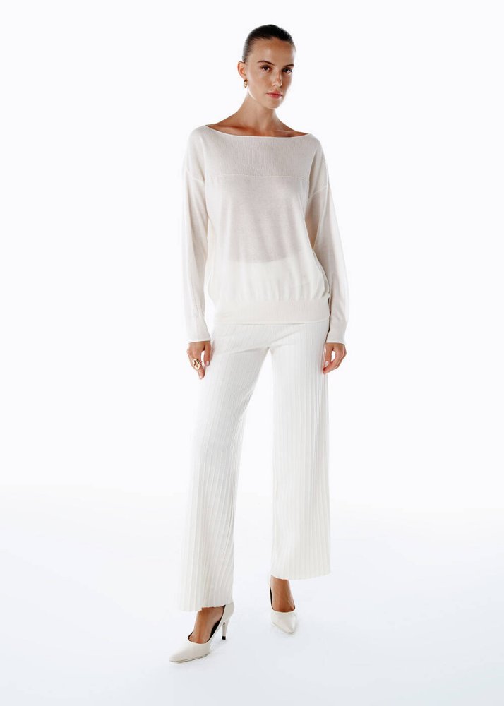 Extrafıne Merino Yün Karışımlı Triko Pantolon Ekru