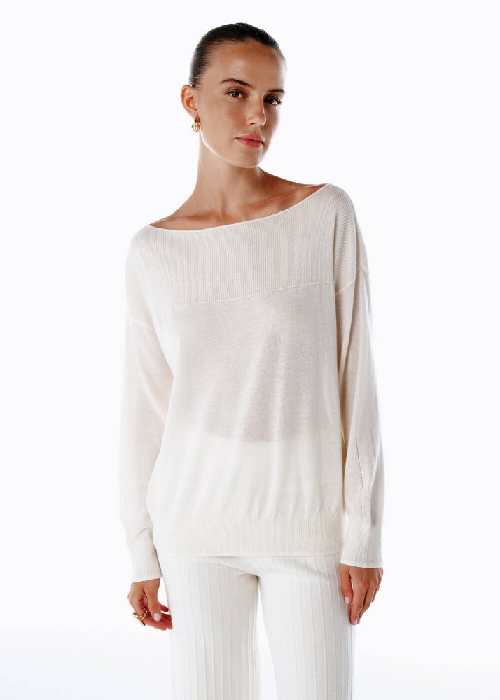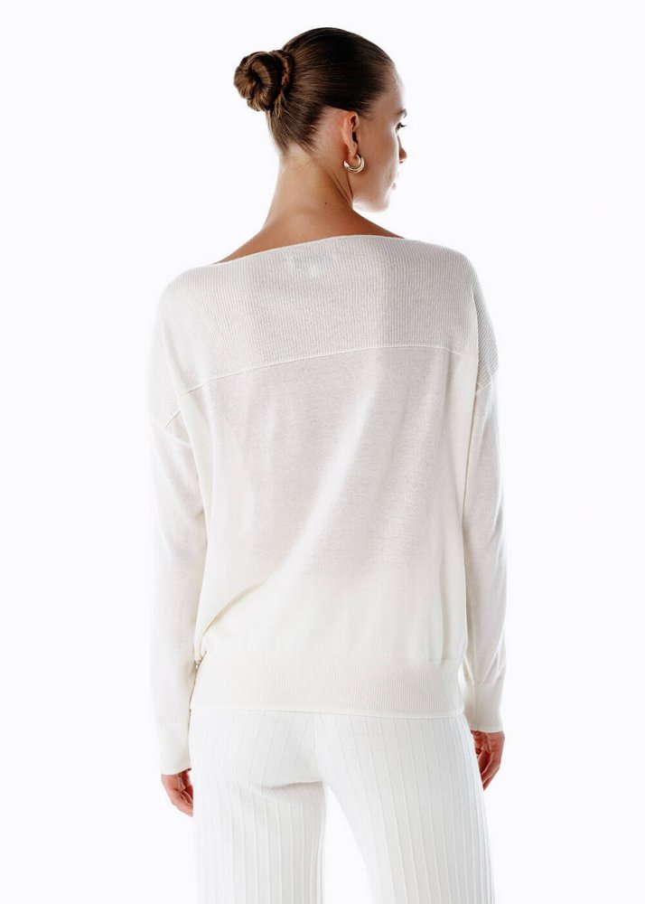 Minimalizmin zarafetle buluştuğu bir yorum: Ultrafine organik kaşmir triko, ekru tonunun saf dinginliğiyle heykelsi bir görünüm kazandırıyor. Kayık yaka detayı, modern ve akışkan bir hat yaratırken, yumuşacık dokusu gün boyu konforu garanti ediyor. Şık pantolonlarla sofistike, denimlerle zahmetsiz modern bir stil yakalayabilir; bu eşsiz parçayı dört mevsim farklı kombinlerinizin merkezine yerleştirebilirsiniz.