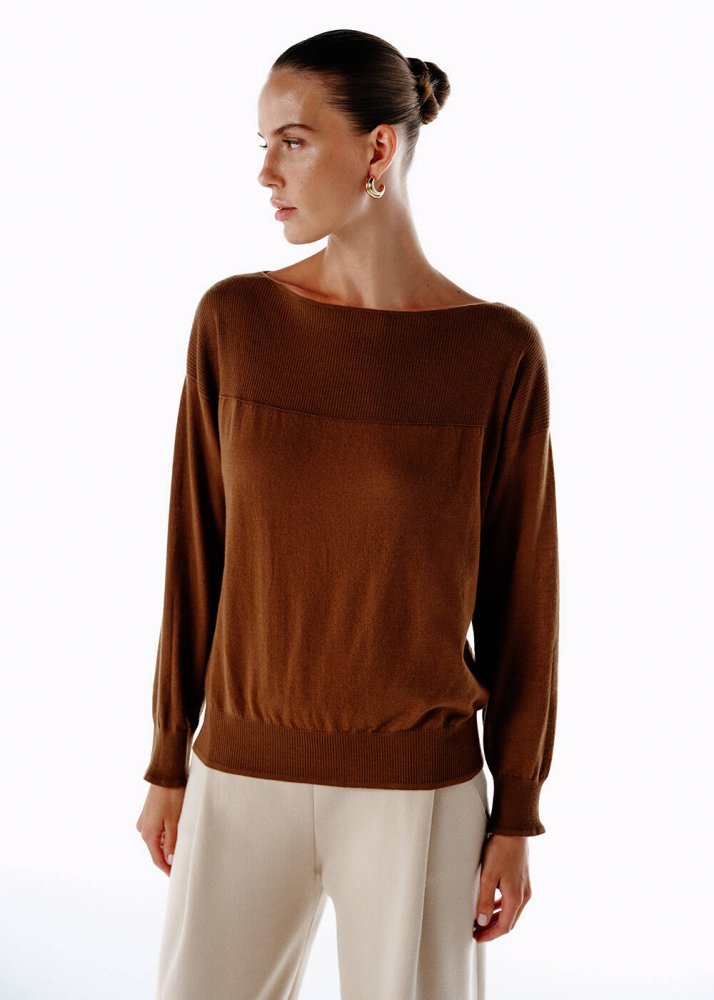 Ultrafine organik kaşmirin konforunu, tütün tonunun doğal ve karizmatik havasıyla hissedin. Yalın kayık yaka detayı ve zarif uzun kollar, sade ama etkileyici bir siluet oluşturuyor. Günlük kombinlerde rahatlıkla kullanılabilirken, akşam buluşmalarında da güçlü ve modern bir görünüm sağlıyor. Hem klasik parçalarla hem de modern dokunuşlarla kolayca kombinlenebiliyor. Bu triko, gardırobunuza sakin ama güçlü bir karakter katıyor.