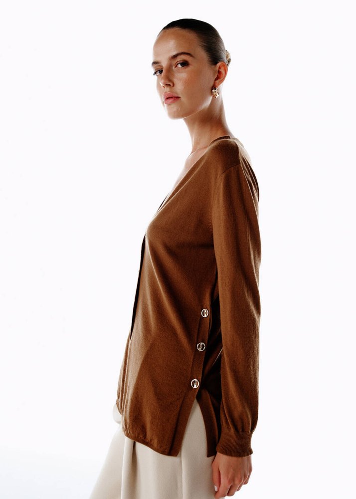 ULTRAFINE PECAN ORGANIC CASHMERE KNIT CARDIGAN