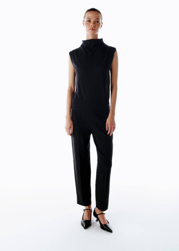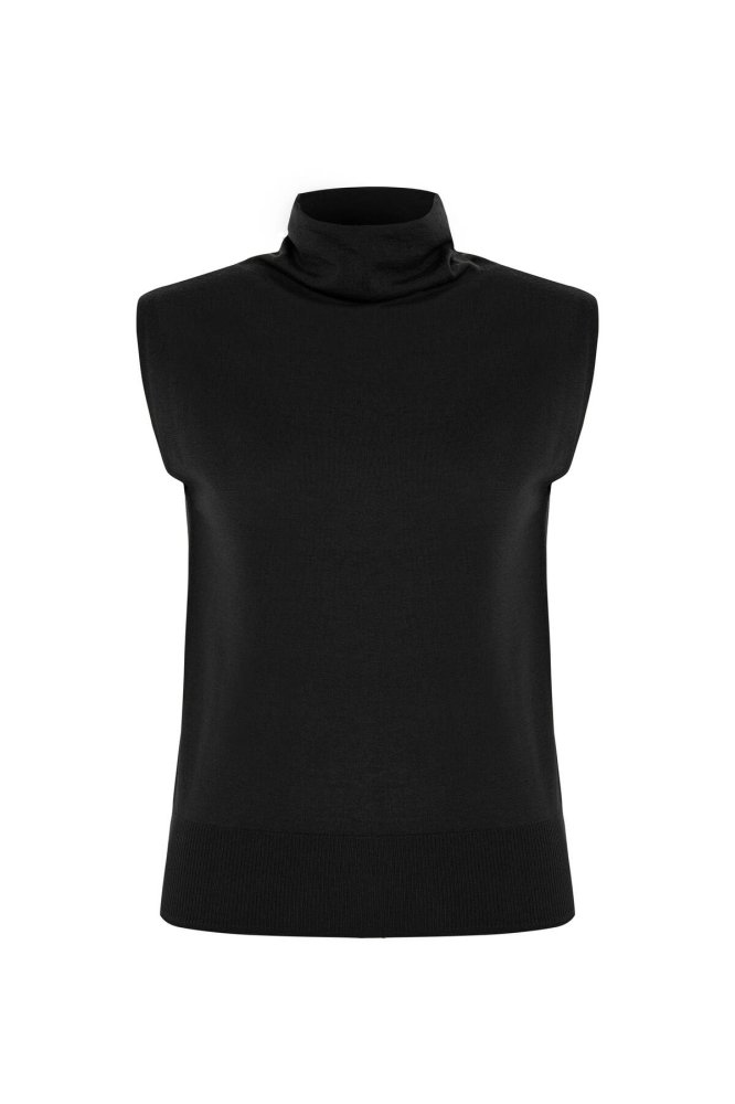 ULTRAFINE WOOL CASHMERE BLEND KNIT TOP BLACK