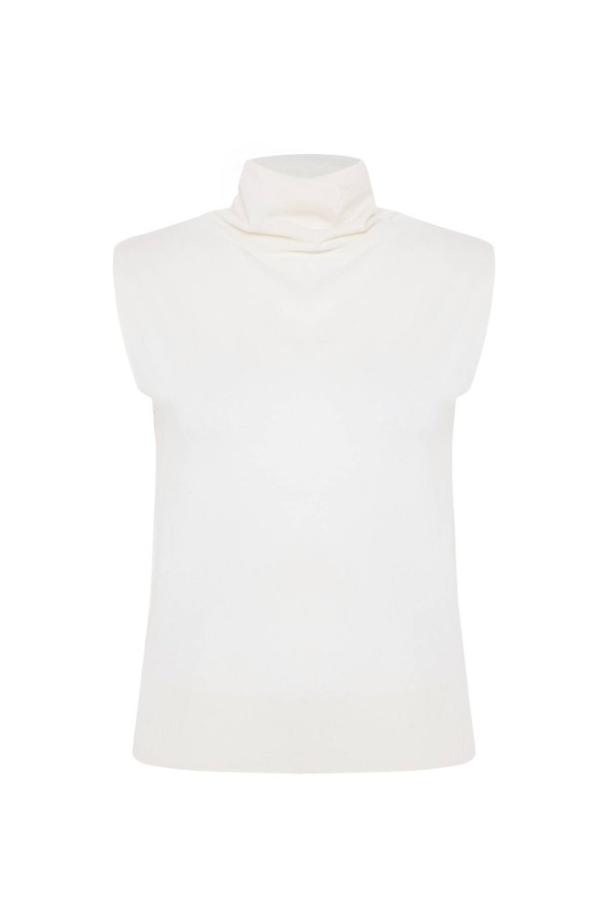 ULTRAFINE WOOL CASHMERE BLEND KNIT TOP ECRU
