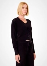 V NECK CROP BLACK KNIT TOP