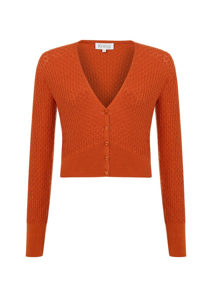 V NECK PUMPKIN KNIT CARDIGAN