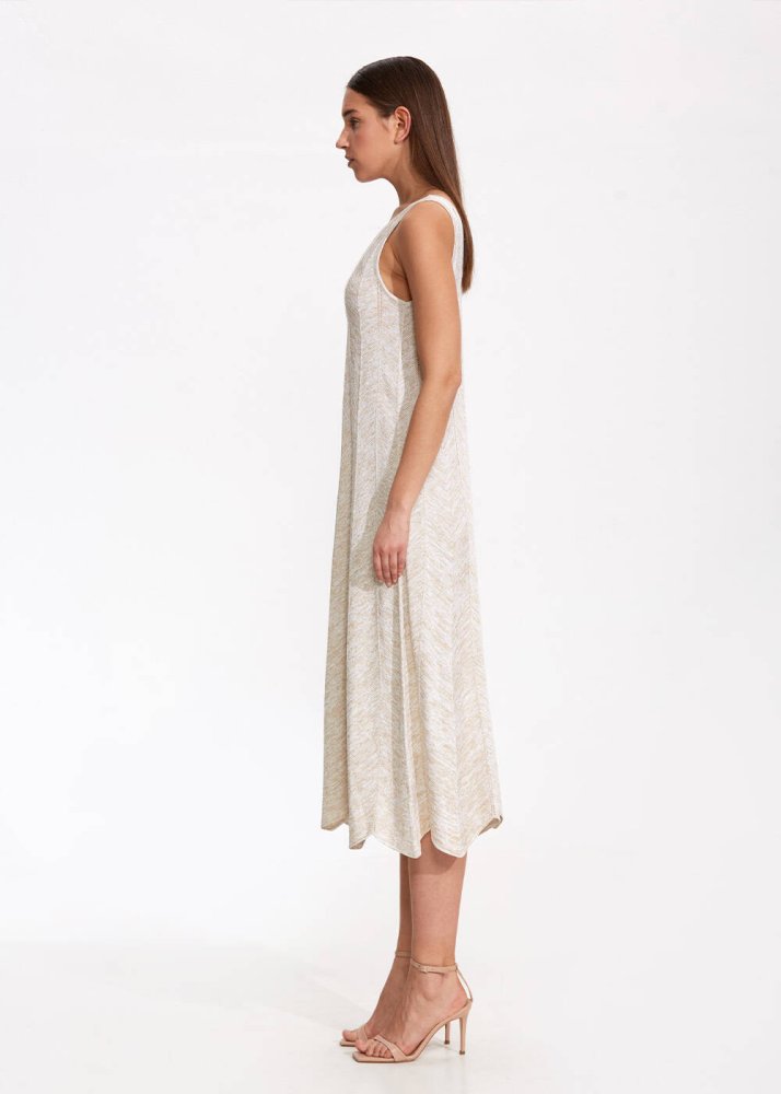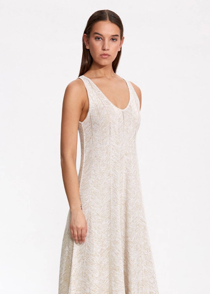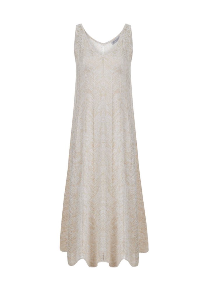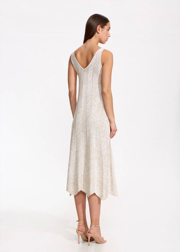 V Neck Sand Long Knıt Dress