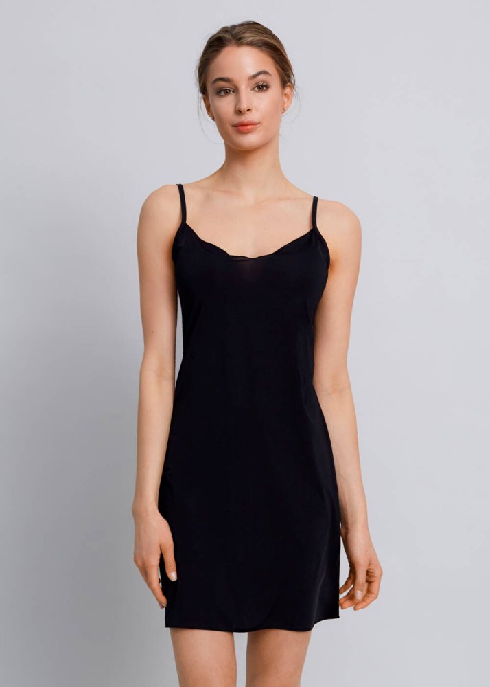 V Neck Thin Shoulder Strap Black Full Slip