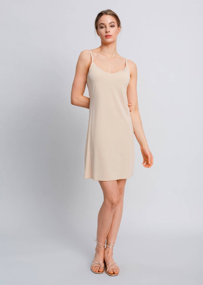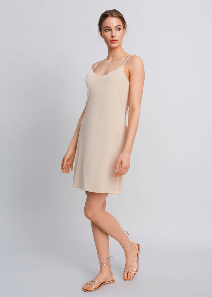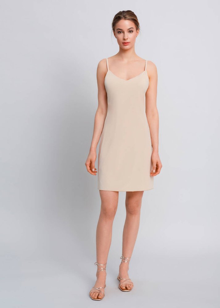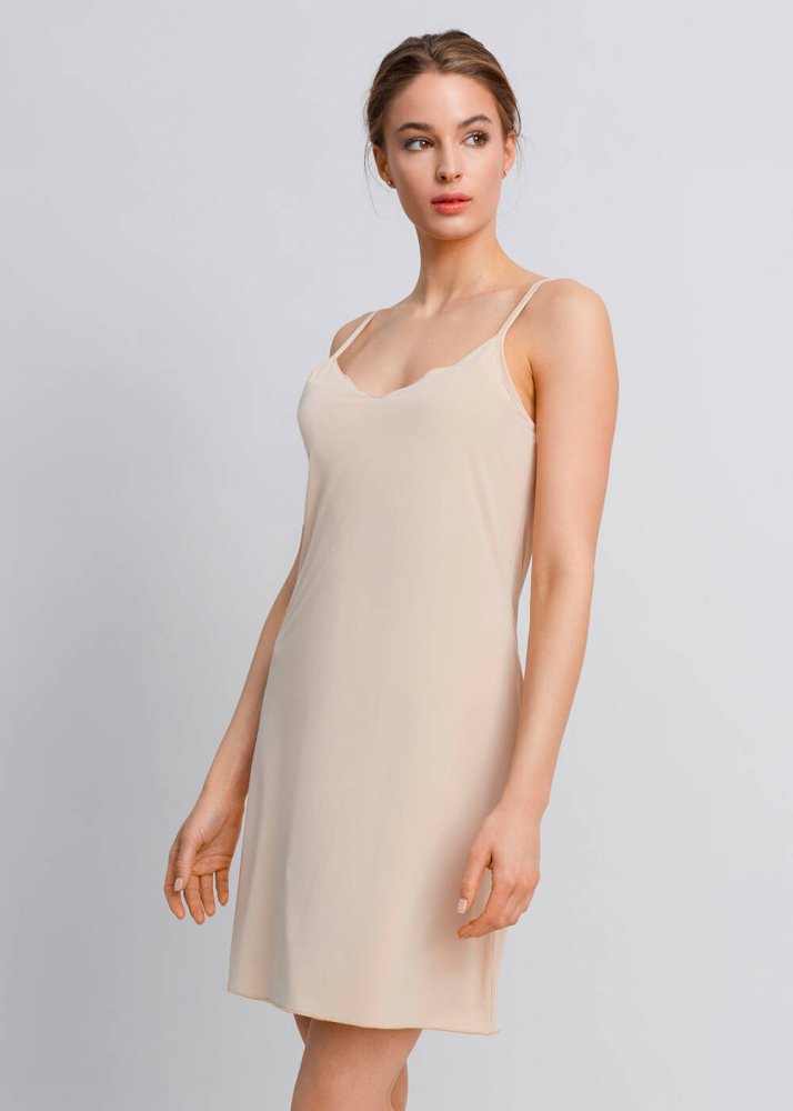 V Neck Thin Shoulder Strap Nude Full Slip