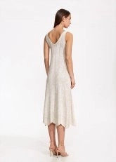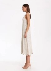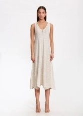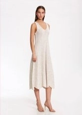 Zamansız bej rengiyle sıcak yaz aylarında favori giy-çık parçanız olacak uzun triko elbise ile tanışın. V yaka triko elbise, A kesim formu ve yumuşacık dokusu ile Knitss kadınına konforlu ve şık bir giyim deneyimi sunar. Hafta sonu ve hafta içi stilinize şıklık ve konforu bir arada sunan triko elbise modeli, birinci sınıf İtalyan ipliklerinden örülmüştür.