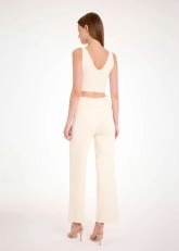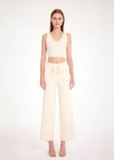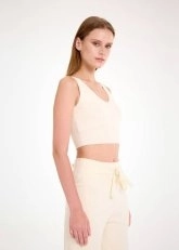İster günlük ister şık kombinlere kolayca adapte olabilen v yaka krem triko crop üst, minimal şıklığı ile zamansız bir giyim deneyimi sunuyor. Knitss’in sürdürülebilir modacılık ilkelerine göre üretilen kolsuz v yaka crop triko, geri dönüşümlü iplik dokusu ve çağdaş şıklığı ile modern kadının doğaya duyarlı, konforlu ve özgür giyim anlayışına hitap ediyor.