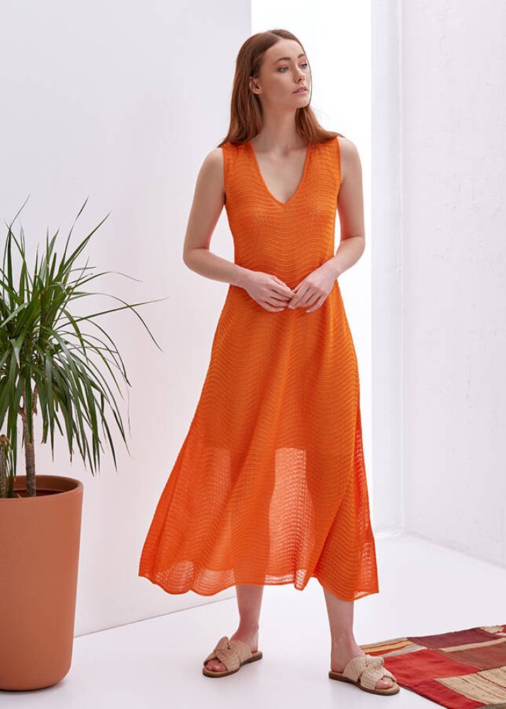 V Yaka Kolsuz Turuncu Triko Elbise
