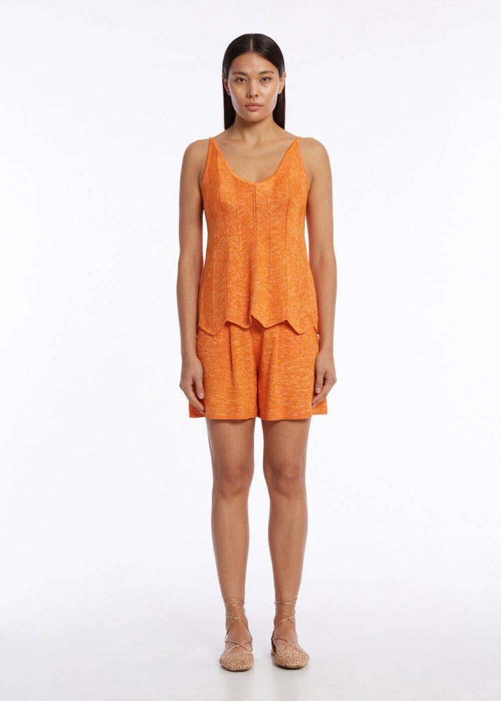 Rahat Kesim Pileli Turuncu Triko Şort