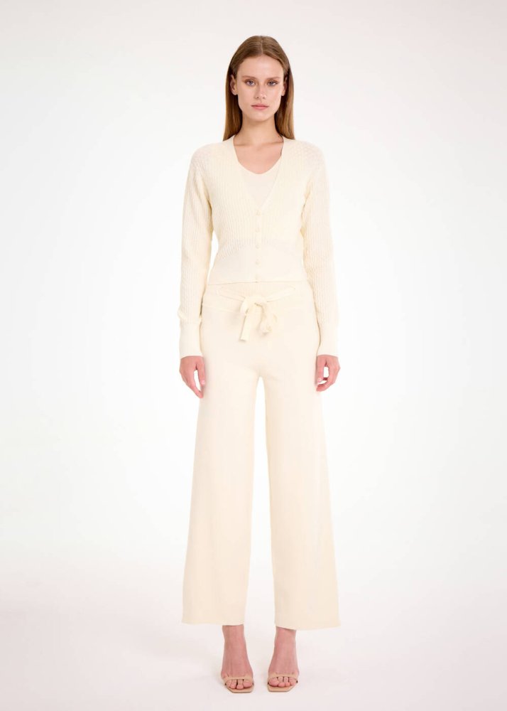 Minimal kadın kombinlerinin vazgeçilmezi krem renginin zarif ajur örgü tekniği ile buluştuğu triko hırkayı keşfedin. İnce ve hafif yapısı sayesinde dört mevsim kullanıma uygun v yaka krem rengi Knitss hırka, geri dönüştürülmüş İtalyan ipliklerinden üretildi. Günün her anına uyan zamansız rengi ve modeli ile kullanışlı bir giy-çık parça olan ince hırka, uzun yıllar giyim dolabınızın vazgeçilmezlerinden olmaya adaydır.