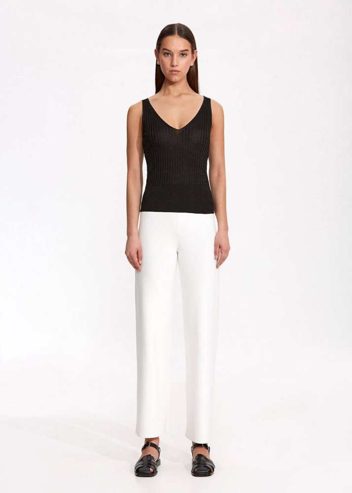 Organik Pamuk Keten Karışımlı Triko Pantolon Beyaz