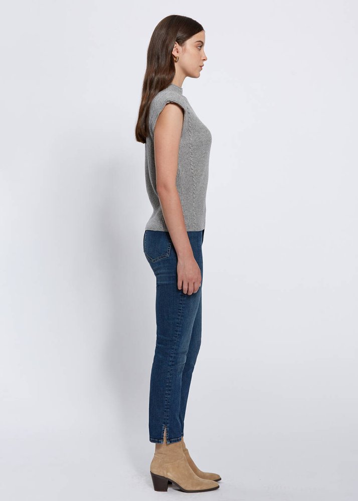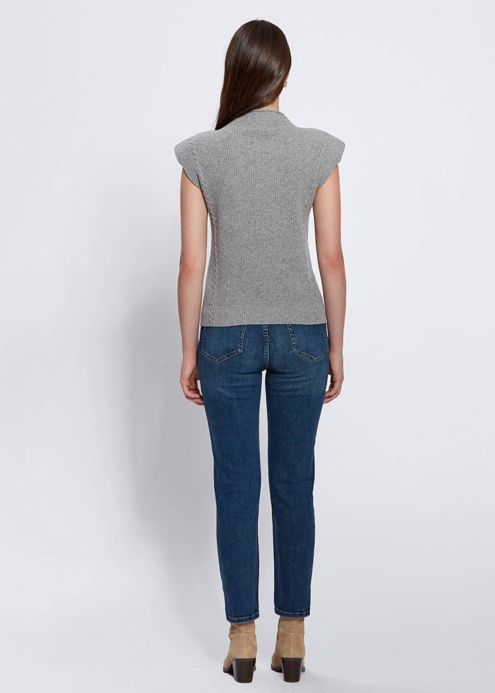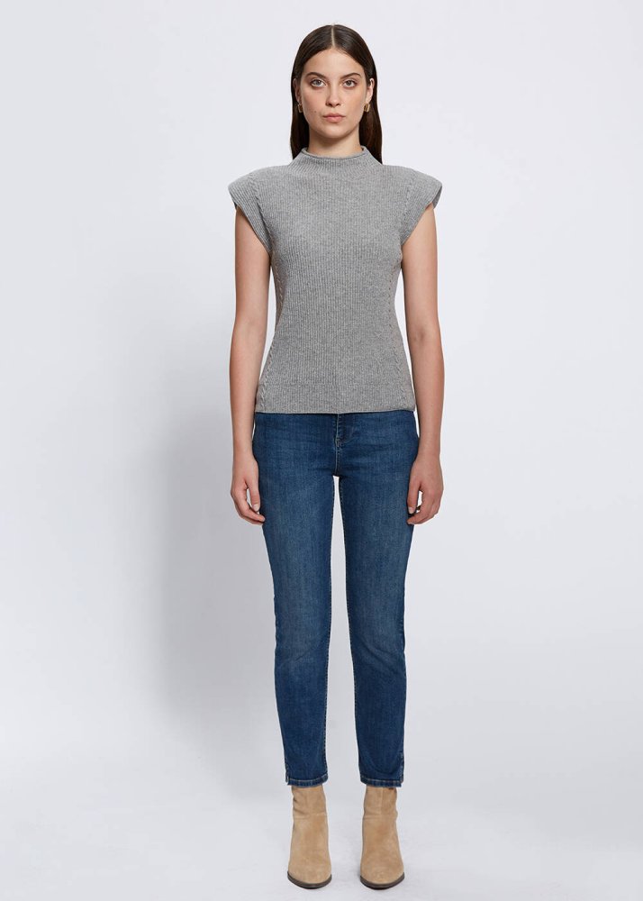 Sofistike bir giyim zevkinin temsilcisi olan vatkalı dik yaka gri triko üst, kaşmir yününden üretildi. Kaşmirin tensel duyuları harekete geçiren yumuşak tuşesi, zarif triko örgü detayları, çarpıcı vatka detayı, hem özel gün hem de günlük kombinlere zahmetsizce uyum sağlayacak çağdaş stili ile Knitss farkını kışlık kombinlerinize taşıyacağınız özel bir parçadır.