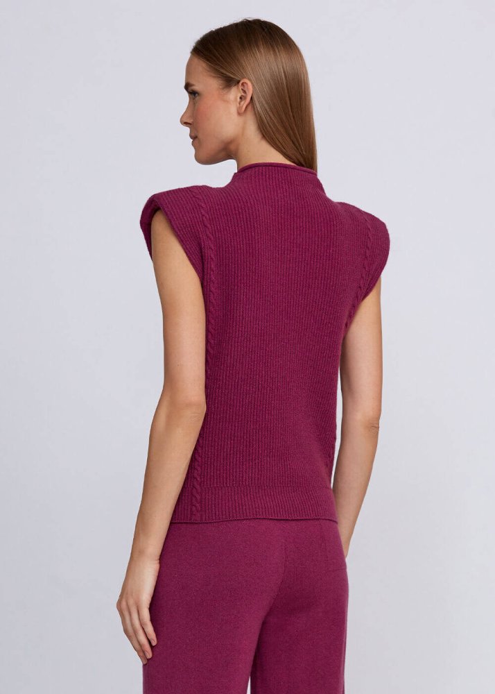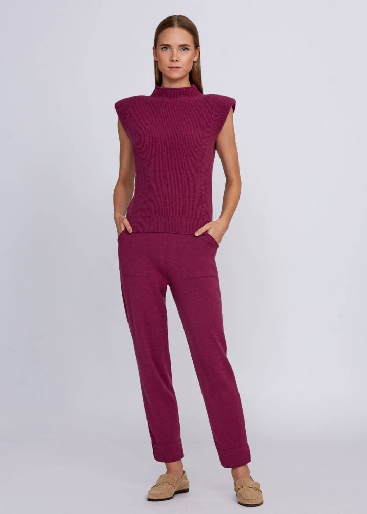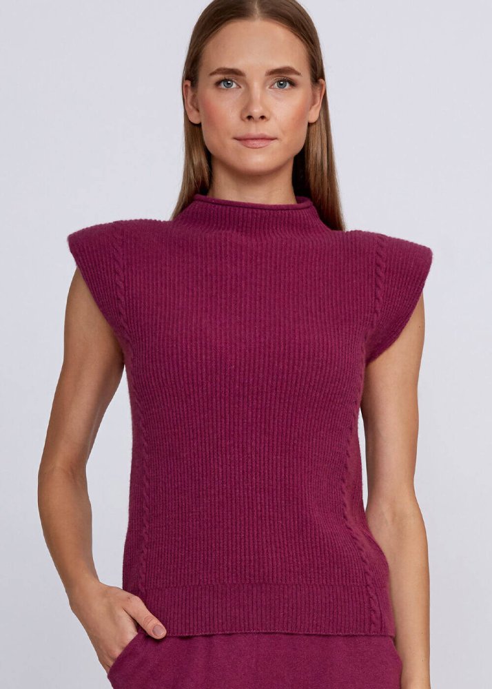 Vatka Detaylı Dik Yaka Kaşmir Pembe Triko Üst