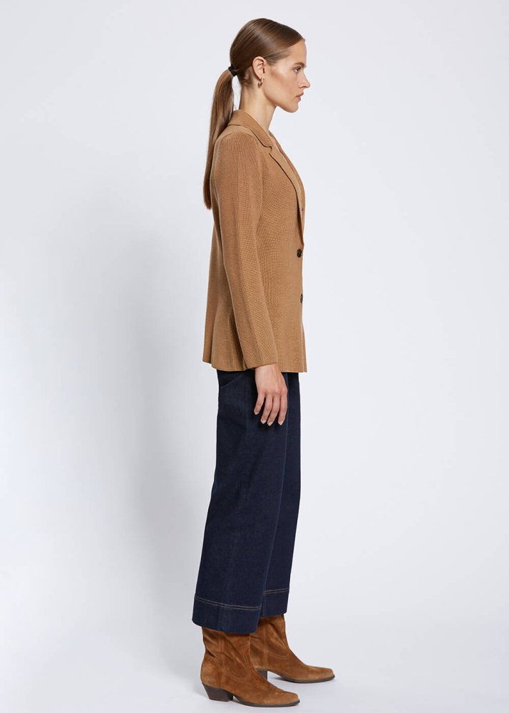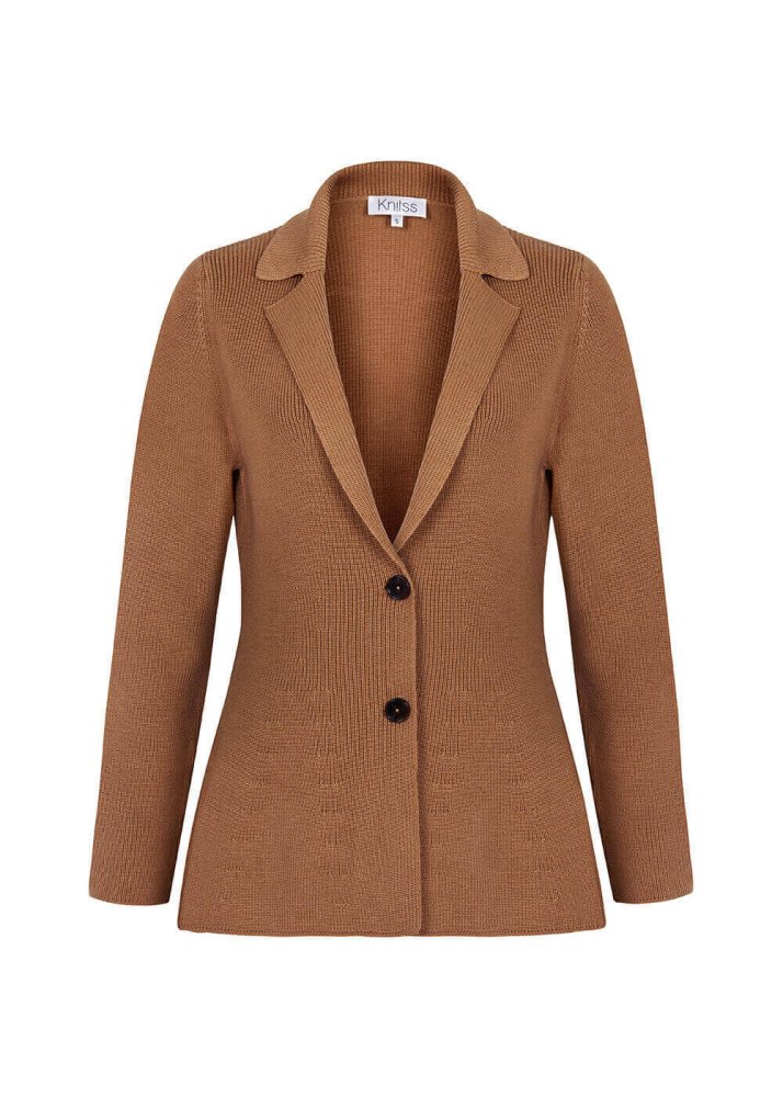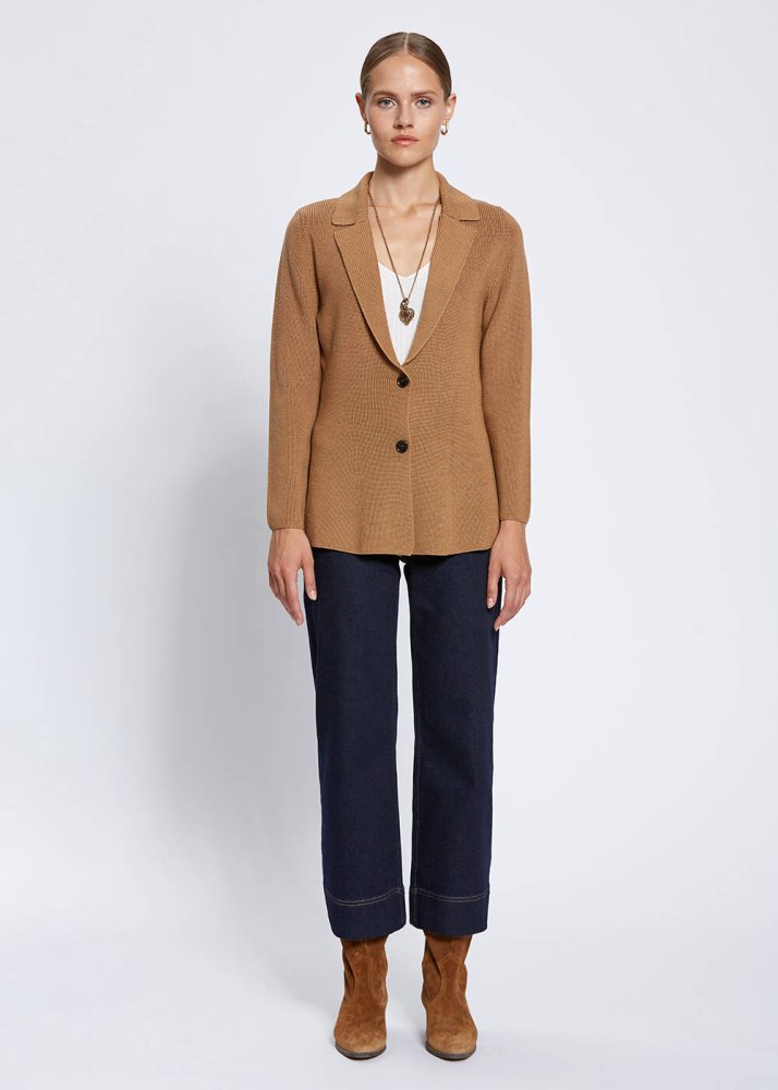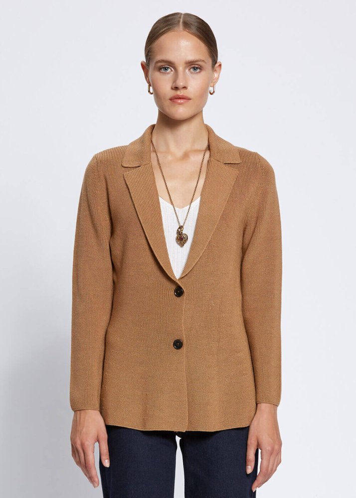 Virgin Wool Camel Knit Jacket