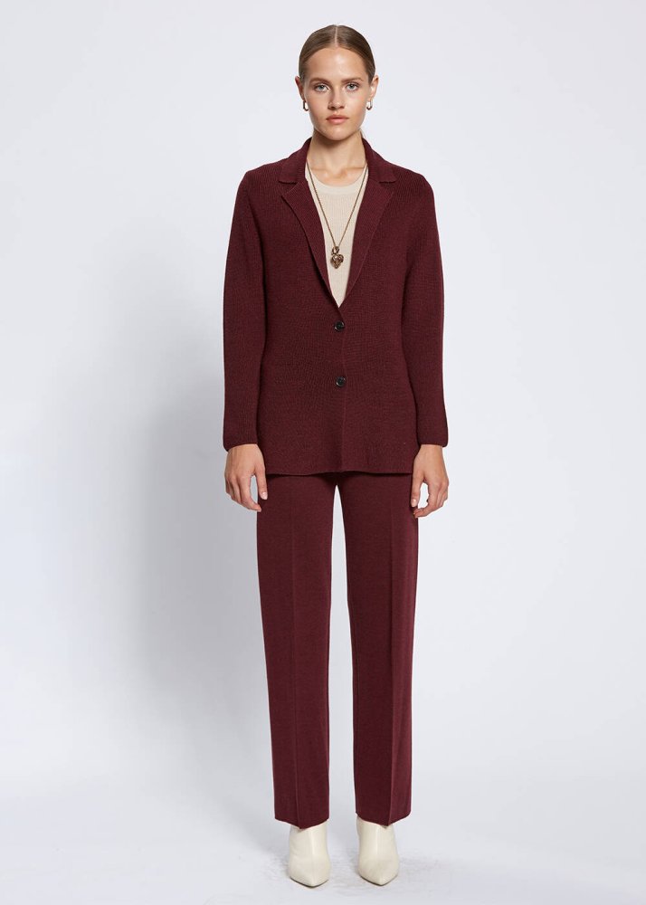 Virgin Wool Wine Knit Jacket