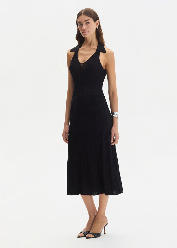 POLO NECK BLACK CROP KNIT TOP