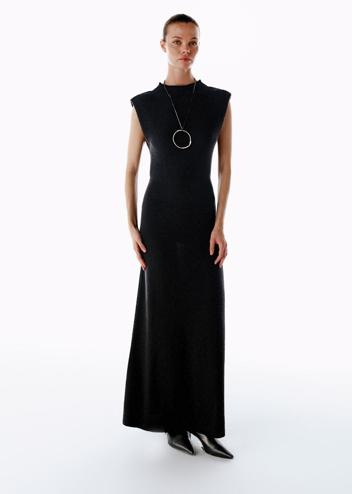 EXTRAFINE MERINO WOOL RICH BLEND KNIT DRESS BLACK