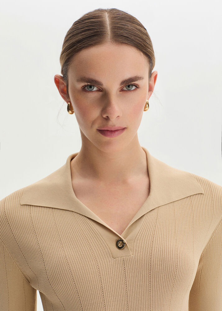 SAND ORGANIC COTTON KNIT TOP