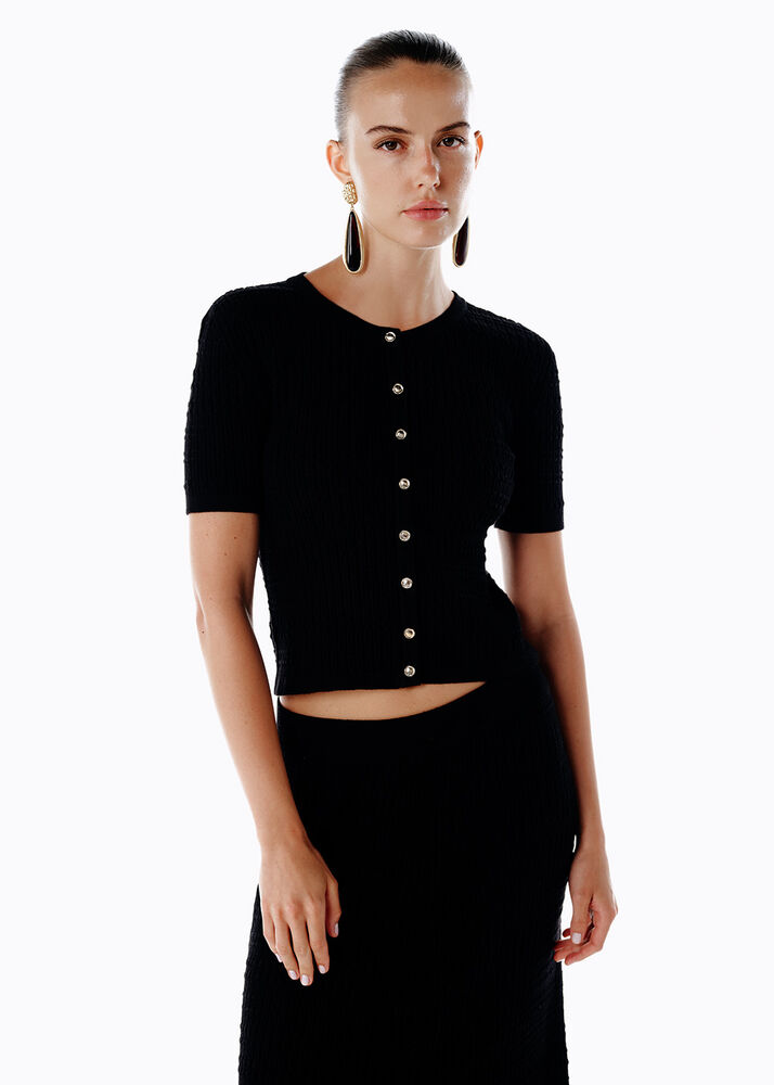 JEWEL BUTTON DETAILED BLACK CROP KNIT TOP