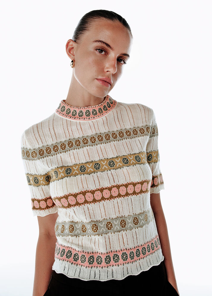 BUTTON CLOSURE ECRU KNIT TOP
