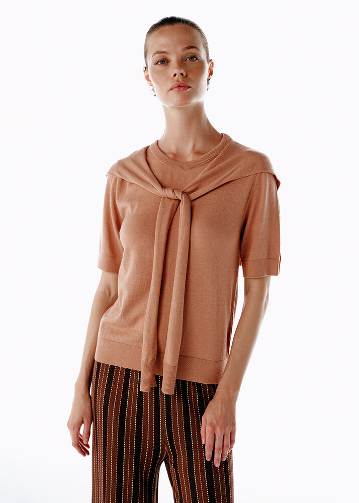 Extrafıne Merino Yün Karışımlı Ekru Triko Üst