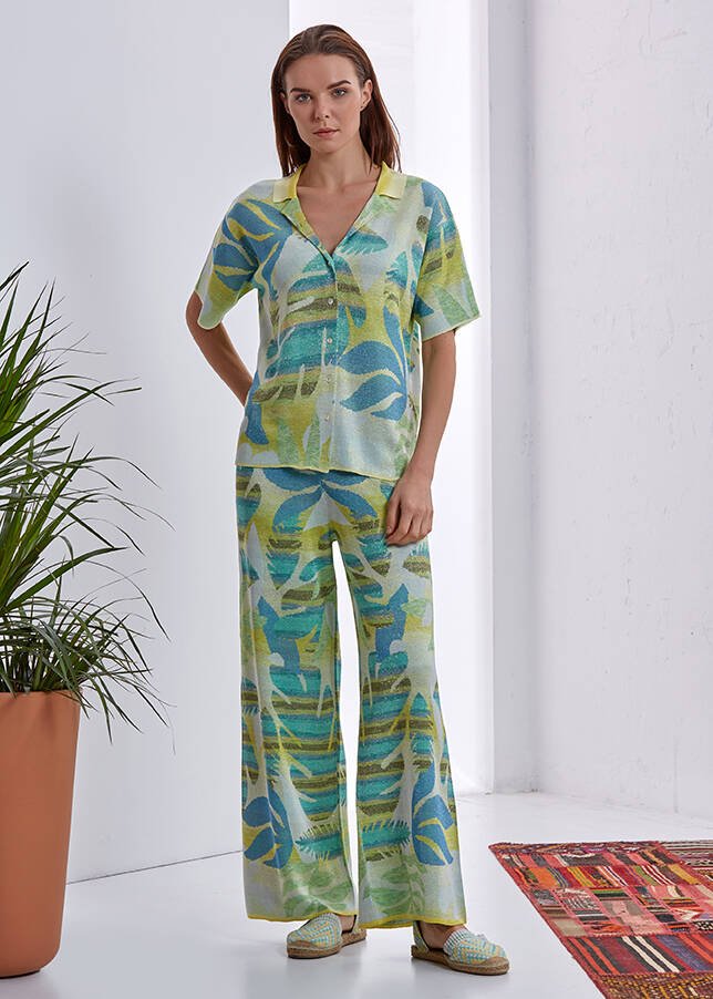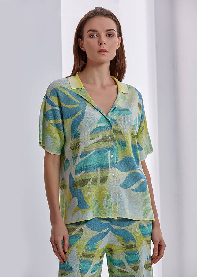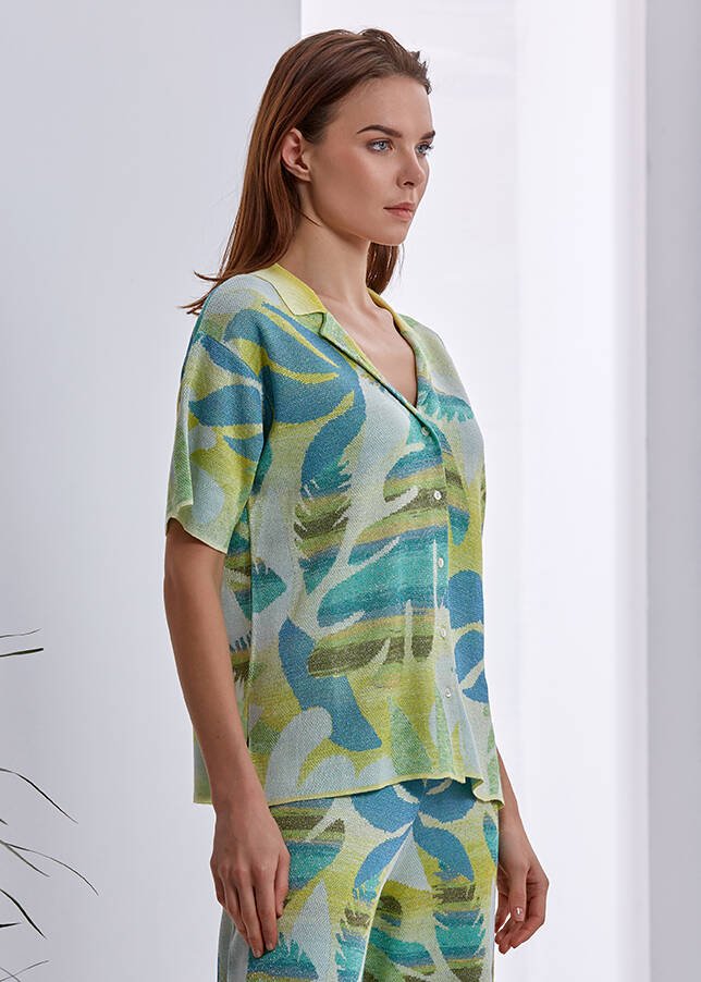 Yeşil Desenli Triko Gömlek