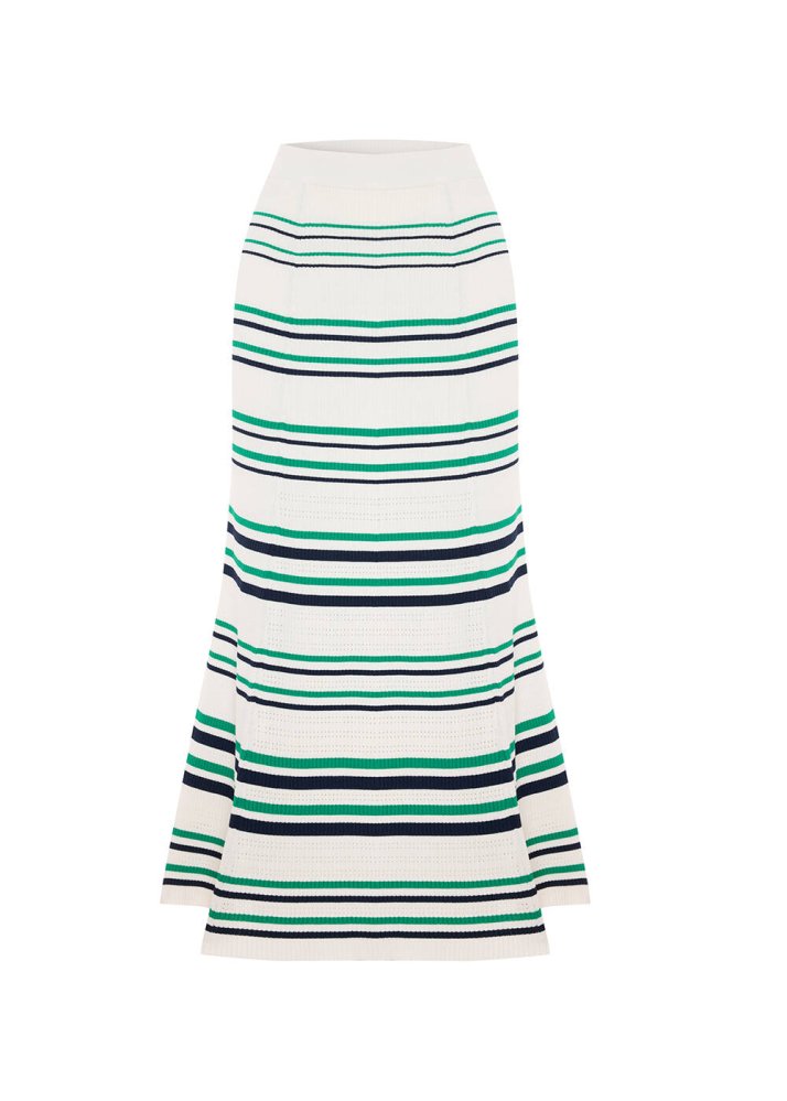 Yeşil Lacivert Çizgili Ekru Triko Etek