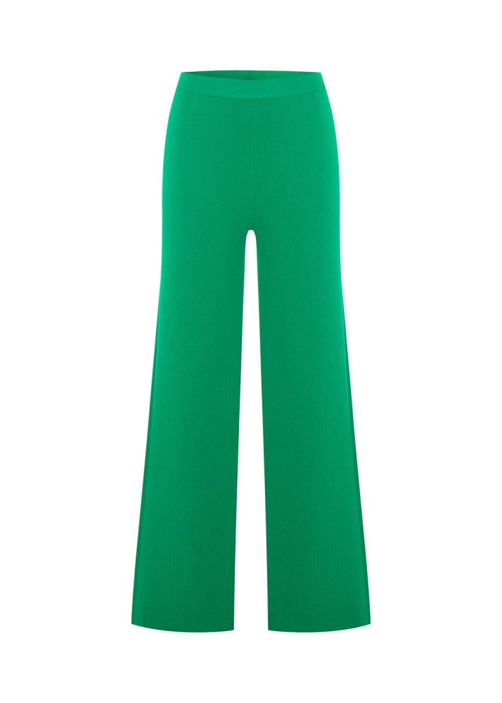 Fitil örgü detaylarıyla hareket kazanan triko pantolon, akıcı ve dengeli bir siluet sunar. Elastik beli gün boyu konfor sunarken, canlı yeşil tonu görünüme güçlü ve modern bir karakter katar. Hem şık hem rahat kombinler için zamansız bir alternatif oluşturur.