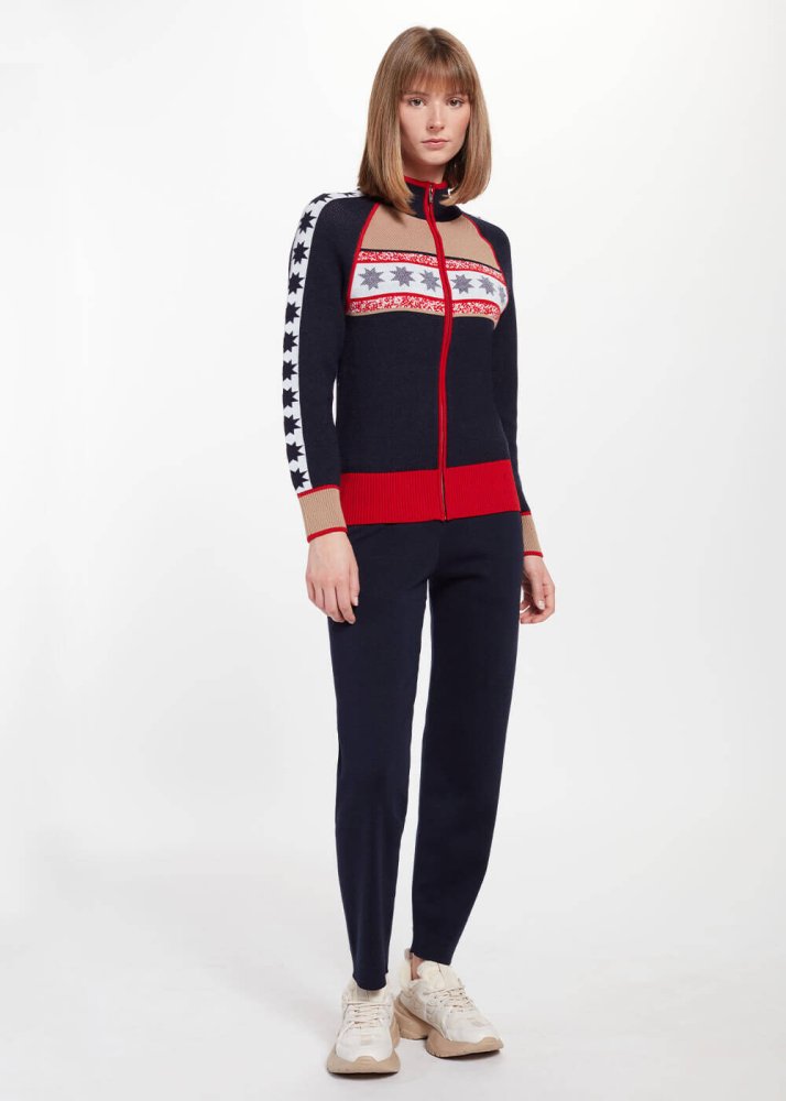 Fermuarlı triko hırka, extrafine merino yünden örülmesiyle mükemmel ısı yalıtımına sahiptir. Yıldız desenleri ile kayak sonrası stilinize Knitss şıklığı katacak kadın boğazlı triko hırka modeli, soğuk kış günlerinde sportif stiliniz için de uygundur.