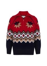 Yıldız desenli fermuarlı geniş yakalı triko, ince Merino yün içeriği ve Knitss’e özgü çağdaş tasarımı ile kışlık giyim dolabınıza ayrıcalık katar. Kırmızı ve lacivert ağırlıklı enerjik renk paletini kayak stiline uygun yıldız deseni ile tamamlayan triko kazak, %100 Merino yününün saf kalitesini her giyişte yaşatır.