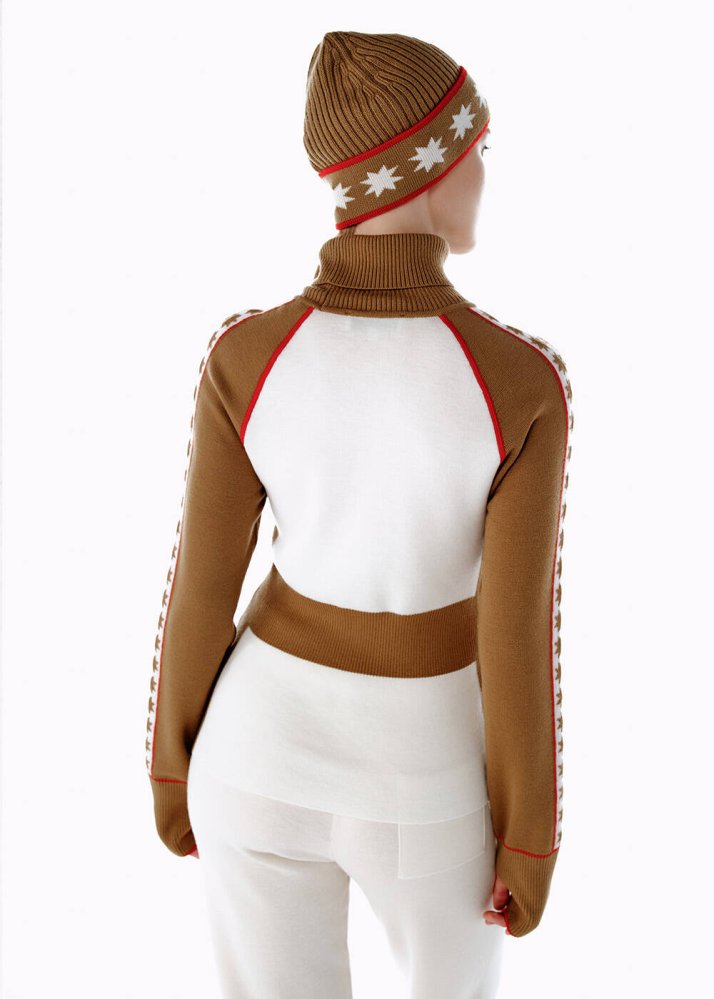 Camel ve ekru tonlarının sakin uyumuyla dikkat çeken extrafine merino yün triko, KNITSS’in Apres Ski ilhamlı özgün tasarım çizgisini taşıyor. %100 Merino yünün doğal hafifliği ve ısı dengesi, soğuk havalarda bile üstün konfor sunarken balıkçı yaka kesimi elegant bir duruş sağlıyor. Slim fit formu modern bir siluet yaratırken, yıldız nakışları sportif şıklığı sofistike bir dokunuşla birleştiriyor. Gerek şehir stilinde gerek kış kaçamaklarında kolayca eşlik edebilen bu triko, hem sıcak tutan hem de stil sahibi bir kış gardırobu yatırımıdır.