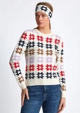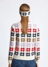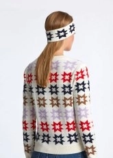 Beyaz üzerine lacivert yıldız deseni ile Knitss kayak stili kombinlerine şıklık katan triko saç bandı ile zarif zevklerinizi giyiminize yansıtın. Merino yünlü geri dönüştürülmüş sertifikalı İtalyan iplik içeriği ile sürdürülebilir moda ilkelerine göre üretilen yıldız desenli saç bandı, kaşındırmayan ve terletmeyen yapısı ile rahatından ödün vermeden şık olmayı bilen Knitss kadınları için üretildi.
