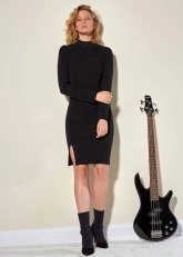 Balıkçı yaka yırtmaçlı siyah triko elbise, zarif ve feminen Knitss şıklığını yansıtan özel bir tasarımdır. Metalik görünümlü lurexli İtalyan iplik içeriği ve kusursuz kalıbı ile çok şık bir görünüm sunan siyah balıkçı yaka triko elbise, hiçbir zaman modası geçmeyecek zamansız bir parça olarak dolabınızın en özellerinden olmaya aday.