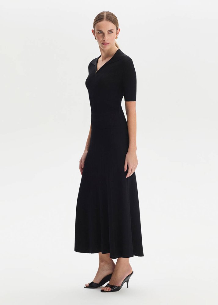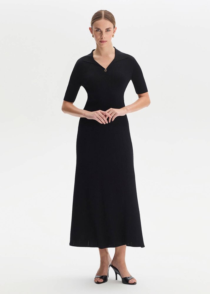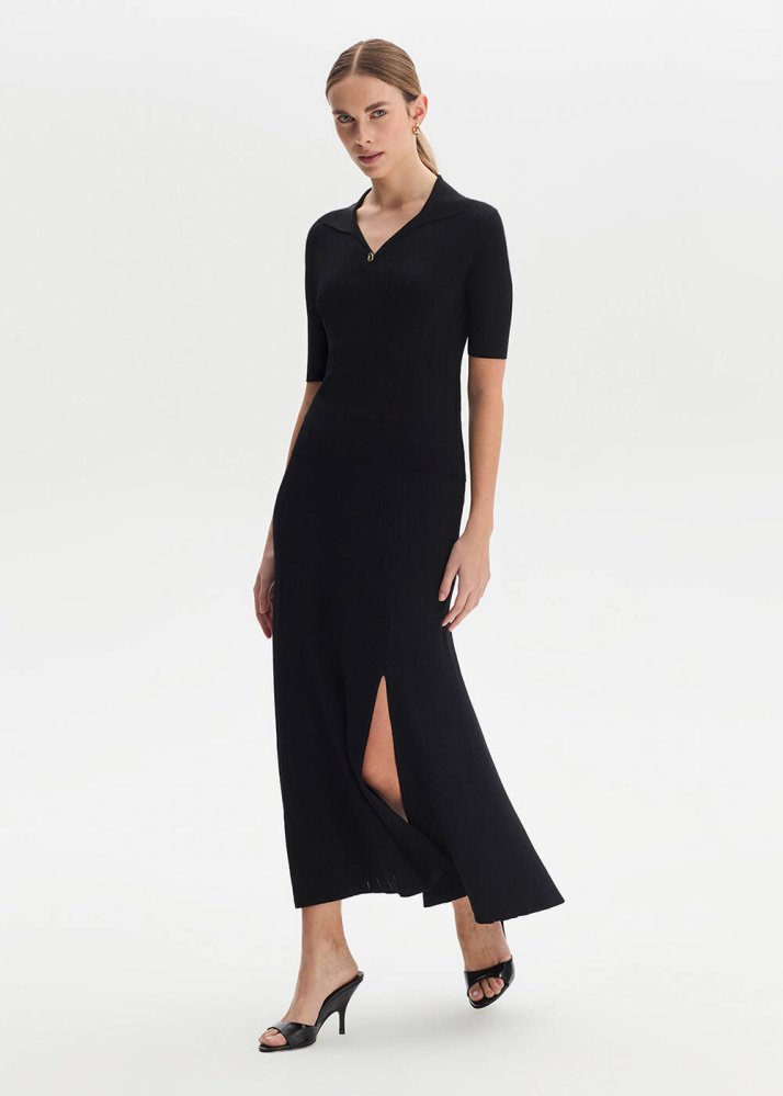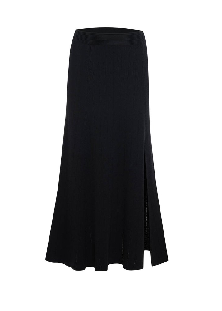 Yırtmaç Detaylı Siyah Triko Etek