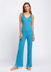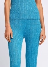 Birinci sınıf İtalyan ipliklerini triko ile buluşturan Knitss pantolon modelini keşfedin. Rahat kesim triko pantolon, ışıltılı iplik detayı, yumuşak ve ince dokusu ile sıcak yaz günlerinde şıklık ve konforu bir arada sunar. Örgü saç detaylarına sahip triko pantolon modeli, Luna triko üst ve hırkası ile birlikte giyildiğinde stilinize Knitss şıklığı katarlar.