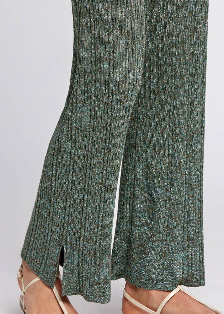 Yırtmaç Detaylı Yeşil Triko Pantolon