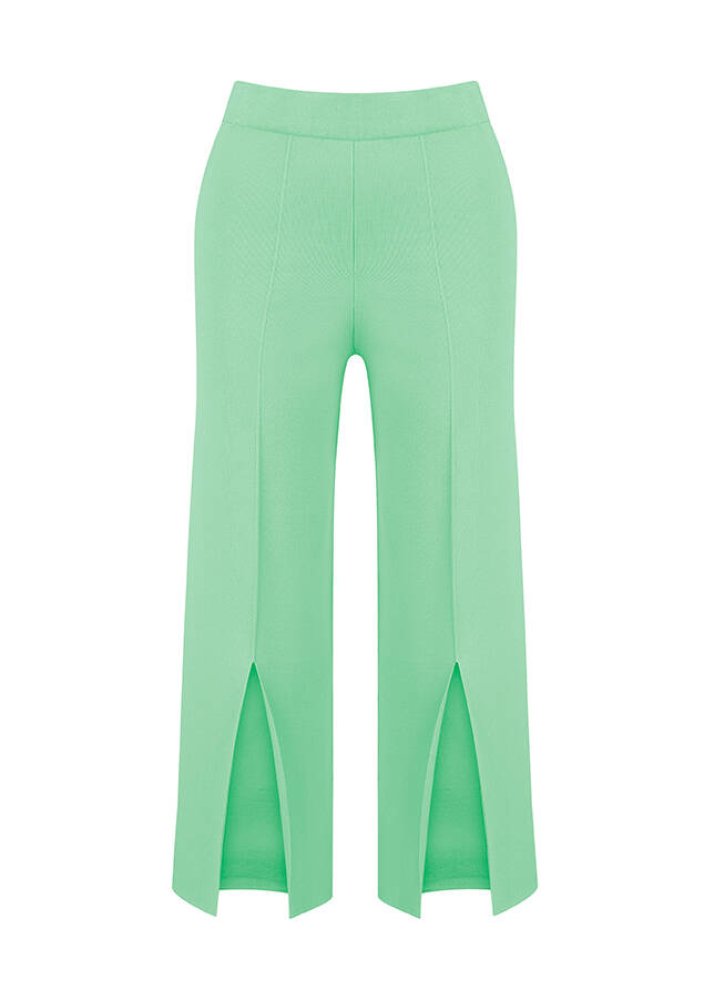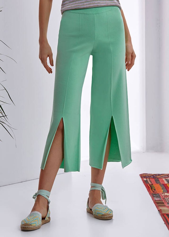 Yırtmaç Detaylı Yeşil Trıko Pantolon