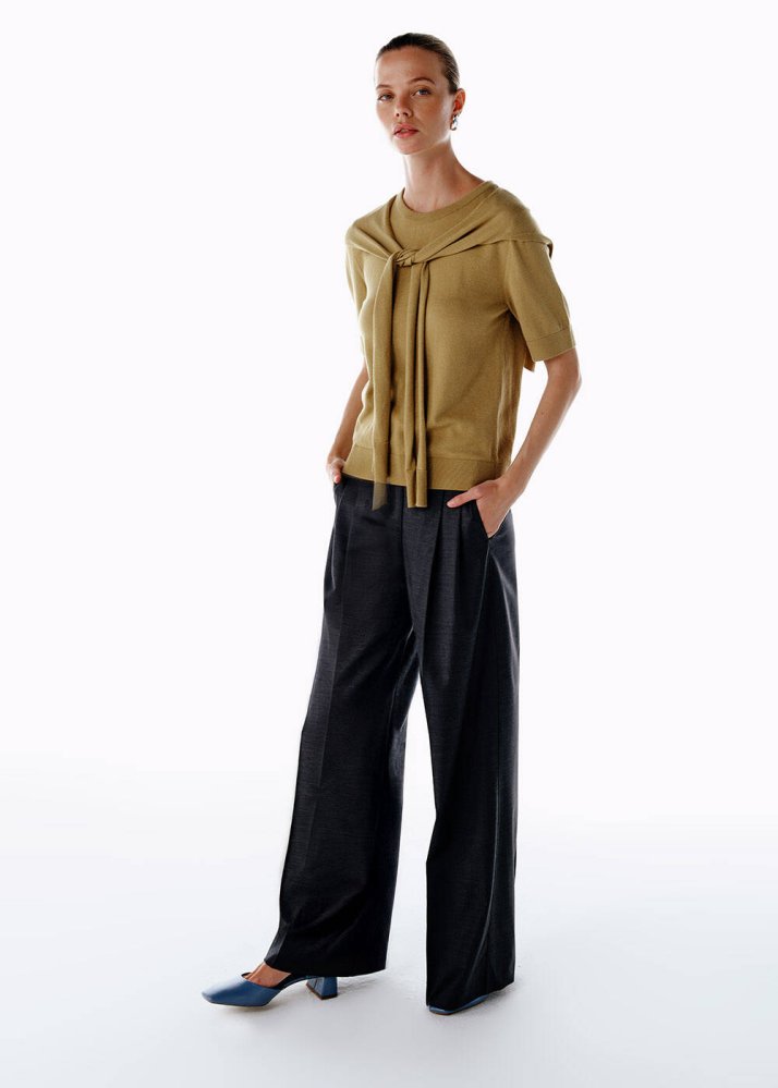 Yüksek Bel Yün Pantolon Gri